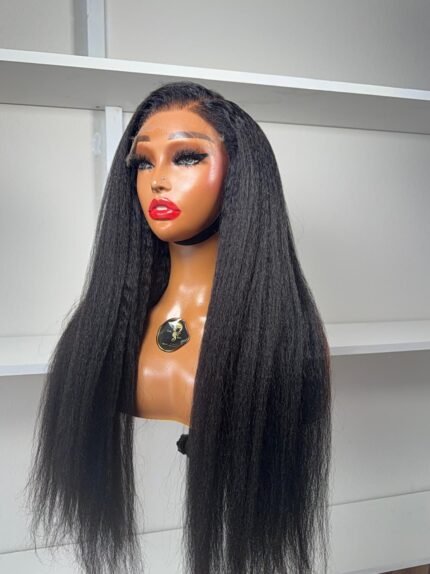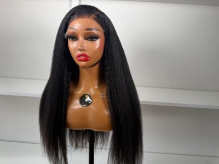 Kinky Straight Human Hair Wig, 24 Inches | 5×5 HD Closure | 300g Full Density | Natural Hairline